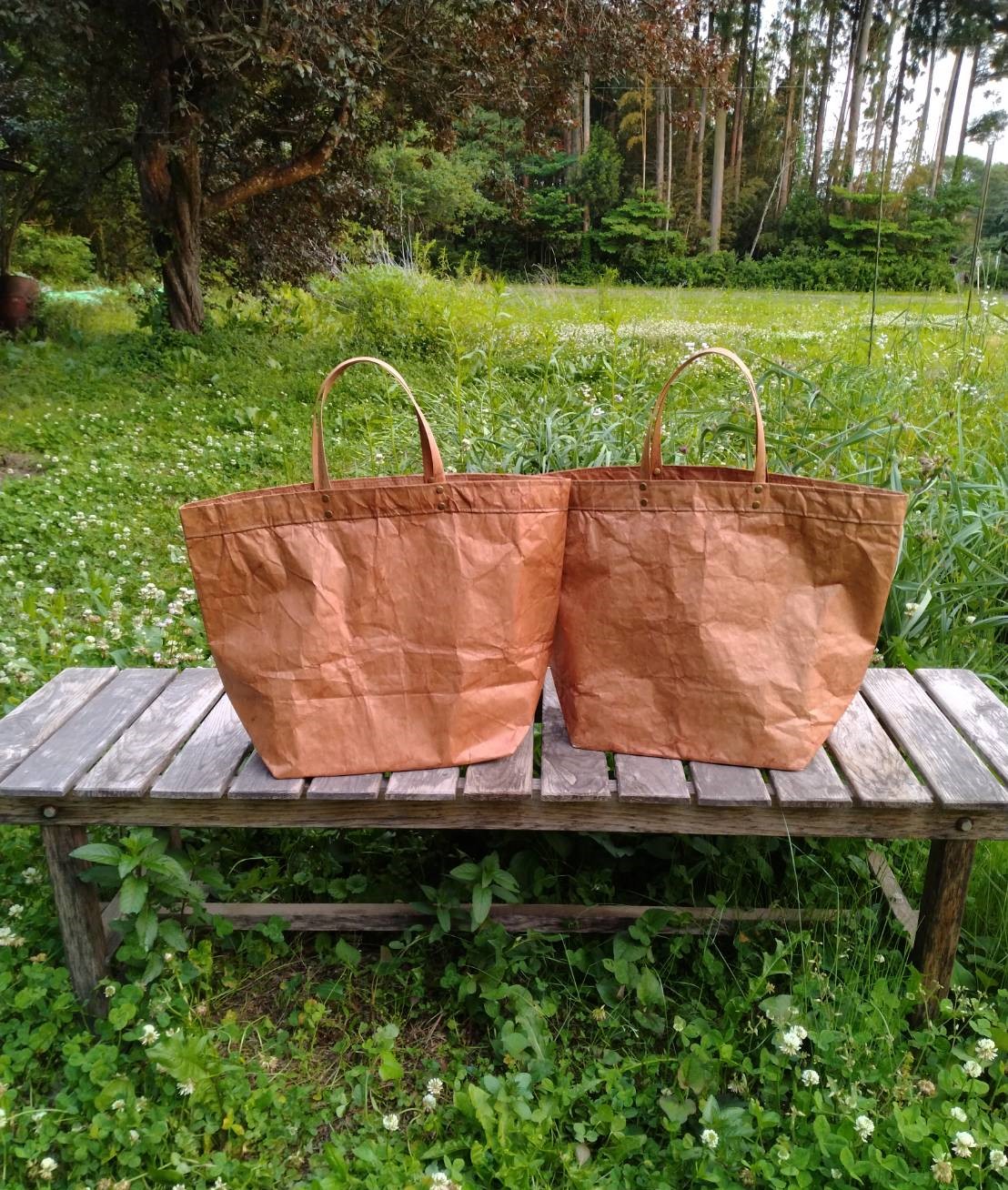 またその質感は使うほどに柔らかくなり、紙製ということを忘れるほど。少々の雨に当たっても大丈夫。使い込んでも再び柿渋を塗り直すことで、防水効果も保てるし、もし破けても、別の米袋を好きな形にカットして貼り直して補修することもできる。