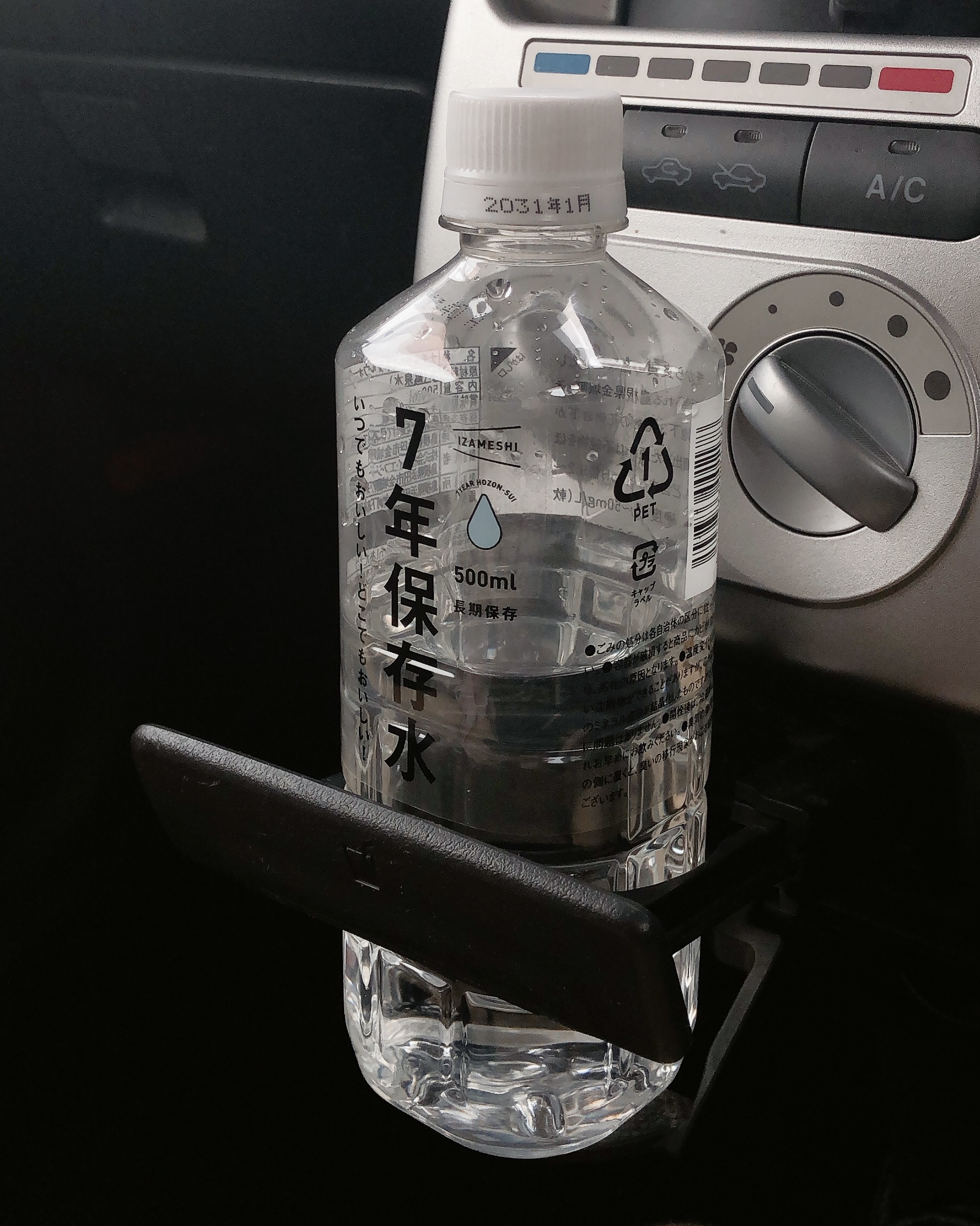 - 7年保存水。先日とあるアクシデントに遭遇し、「すぐそばにある」安心感を実感。