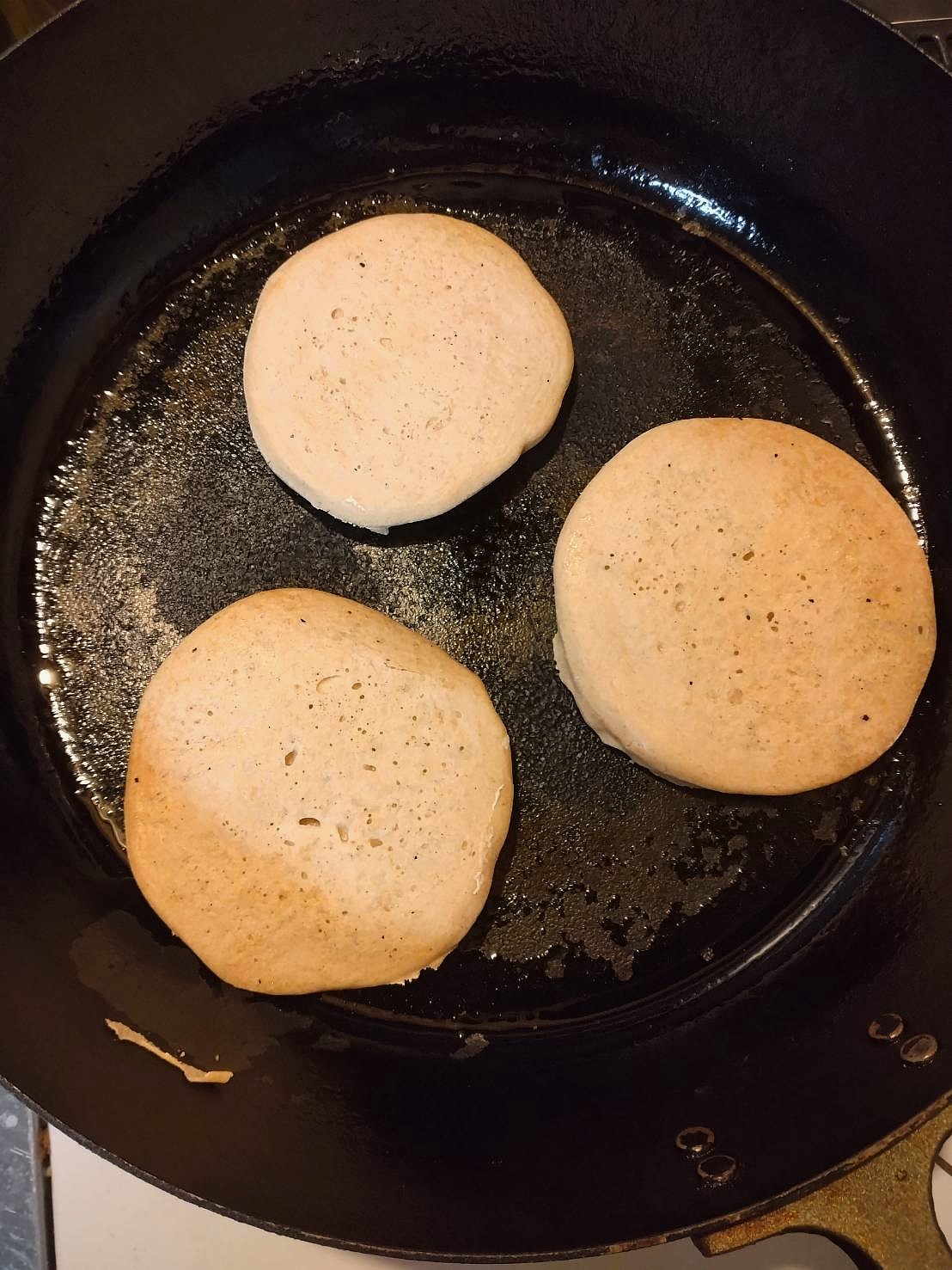 1)の生地をお好みのサイズに広げて、両面焼き色がついたら完成。