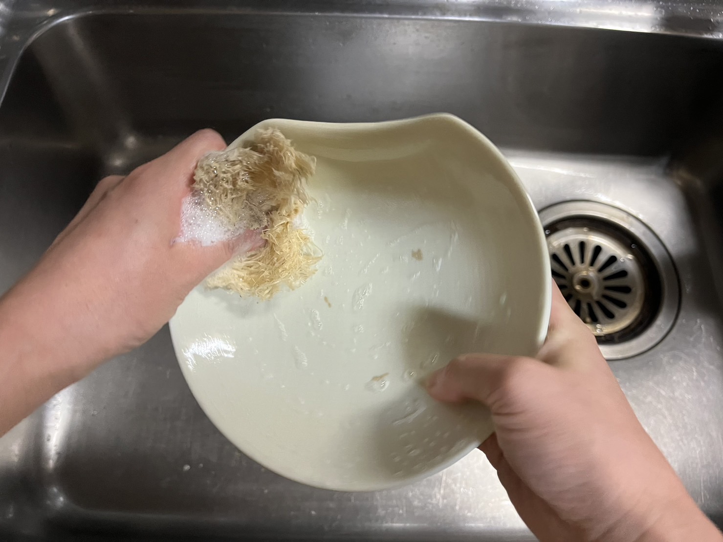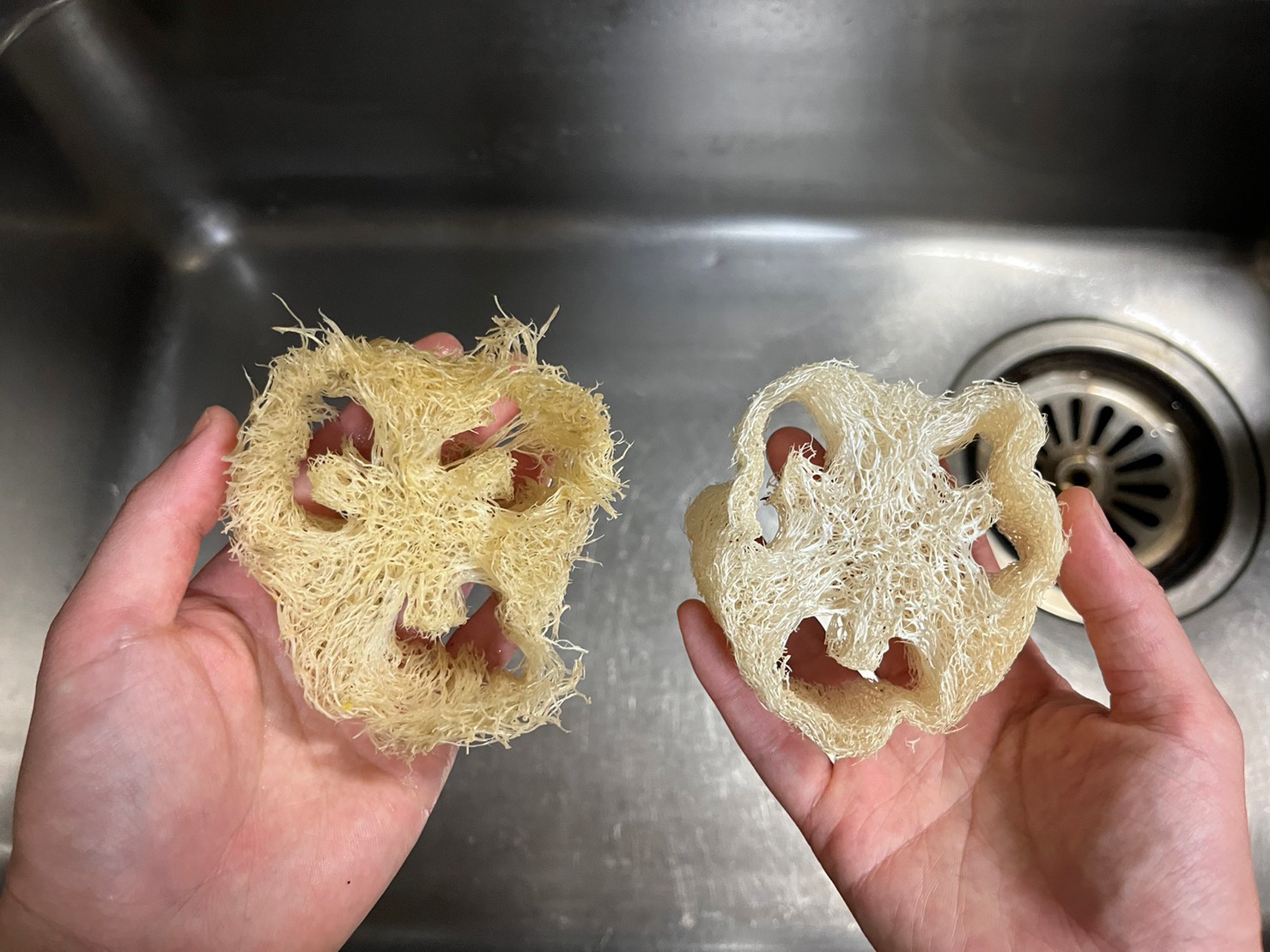 それまで私の中でのヘチマたわしは、どちらかと言うと身体をゴシゴシ洗うイメージが強く、「すぐヘタってしまうのでは?」と、食器用スポンジとしての力を疑っていました。しかし、なぜだかそのとき出合ったヘチマの姿にどうにも惹かしれてまい、思わず購入したのです。