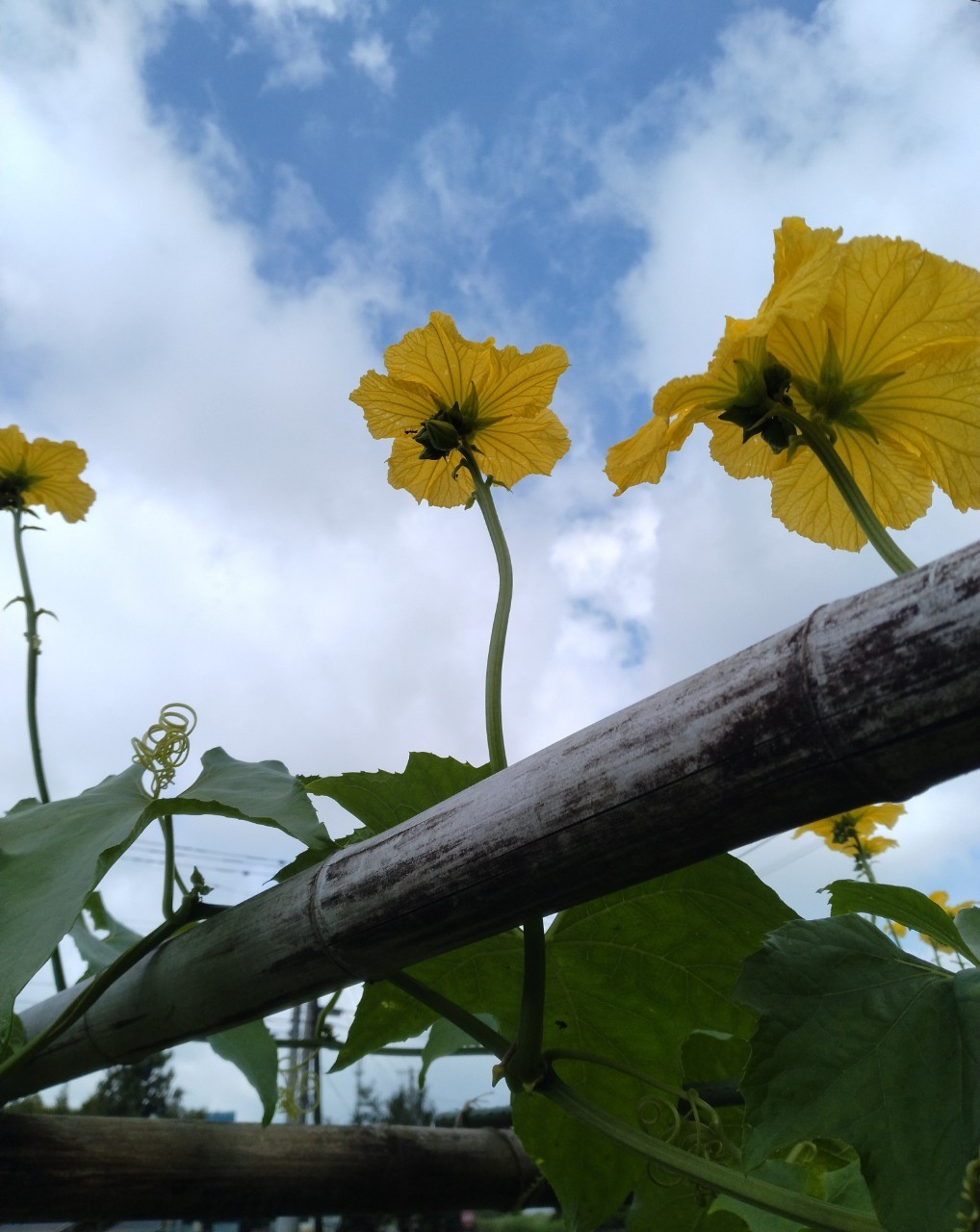 今年はスポンジのストックを確保するために、自分でヘチマを育て始めました。初めての挑戦だったので不安でしたが、無事しっかりと育ち、最近ではいくつか実もつけてくれるまでになりました。午前中に咲く黄色い花を見るのが、毎日の楽しみになっています。